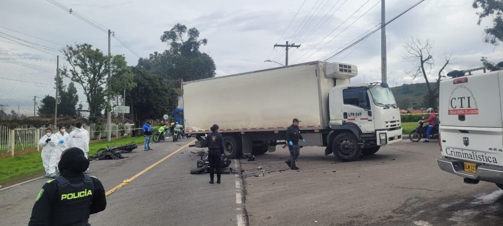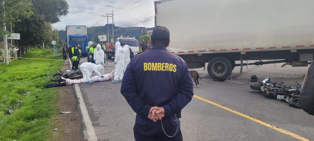 La Dirección Nacional de Bomberos de Colombia informa sobre la atención oportuna de una emergencia vial ocurrida en Cundinamarca, que involucró motocicletas y un vehículo de carga.