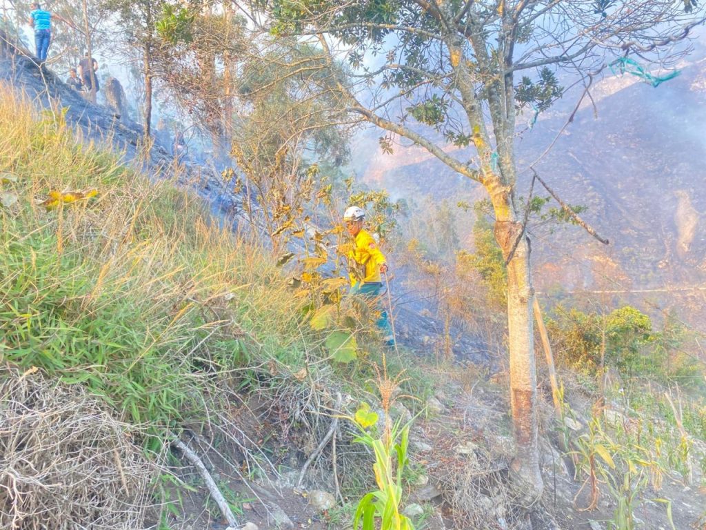 La rápida intervención del Cuerpo de Bomberos Voluntarios de Guayabetal y la colaboración de los habitantes locales permitió la liquidación total del siniestro que afectó 60 hectáreas de zona forestal.